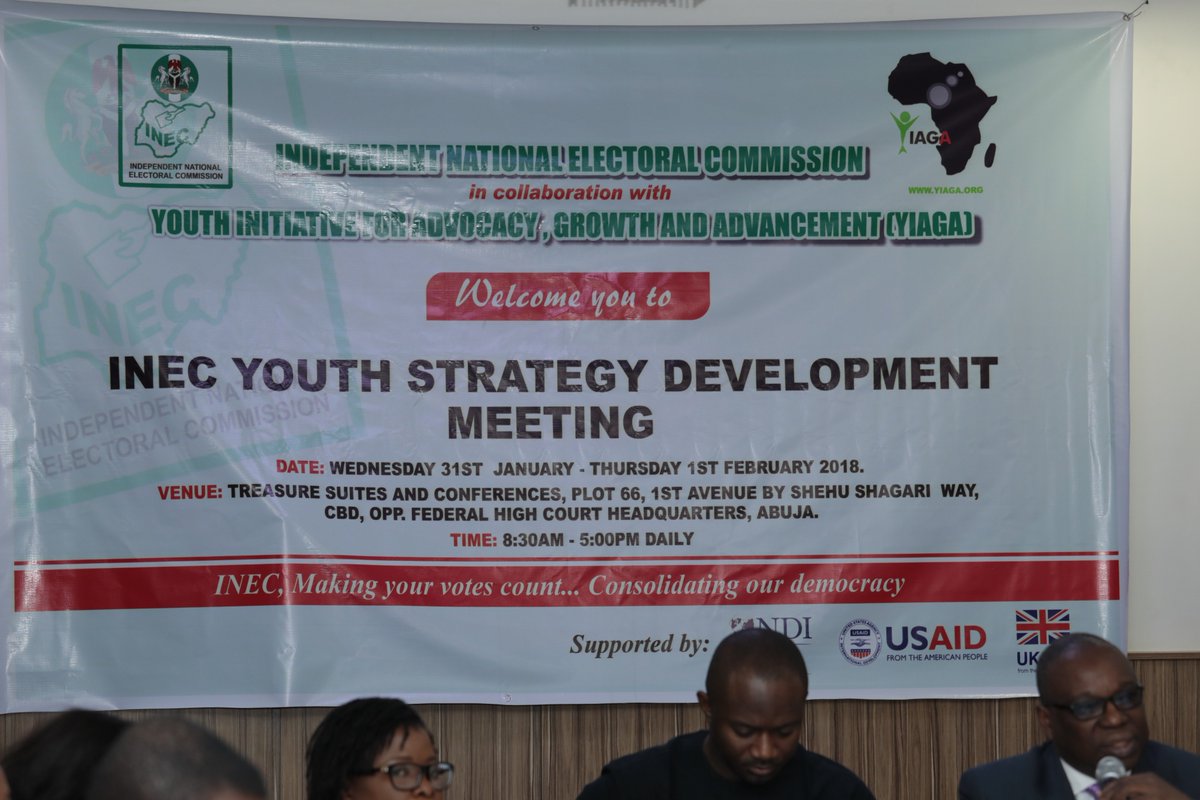- According to Mrs Bello, the aim of the meeting is to generate structure, consensus, working and implementation plan for the strategy development process to involve youths in electoral process @UKaid @NDI @USAID #INECYouthStrategy #ReadyToRun #WatchingTheVote2 replies4 retweets7 likes